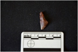 | Description / विवरण | Utilised flake made on chert, use wear marks seen |
