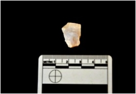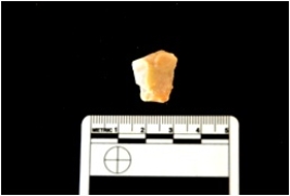 | Description / विवरण | Utilised flake of chert, use wear marks seen, cortex present on dorsal side |
