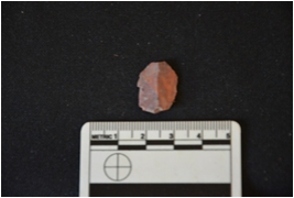 | Description / विवरण | Fragment of a blade made on chert, bulb of percussion visible, mid-ridge on dorsal side, use wear marks seen, broken at the distal end |