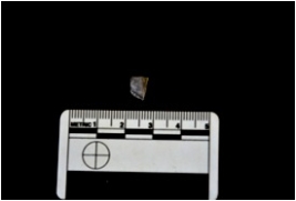 | Description / विवरण | Fragment of a blade made on chalcedony, broken at both ends, use wear marks seen |