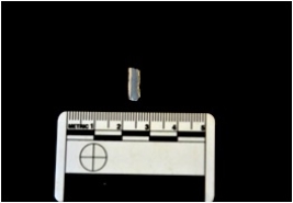 | Description / विवरण | Parallel sided blade made on chalcedony, use wear marks see on both edges, broken at the distal end, |