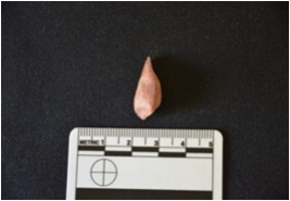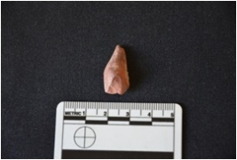 | Description / विवरण | Utilised flake of chert, use wear marks seen, rippling marks also visible |