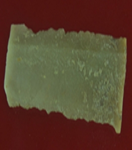 | Description / विवरण | Trench ZB 2, Qdt 2, layer 1 It s a chert blade in rectangular shape. Little bit thick in the middle and edges are rough. Surface is smooth and appearance is off white. |