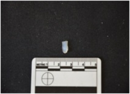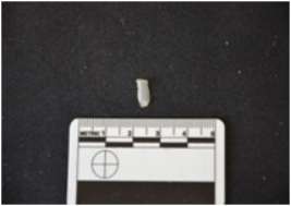 | Description / विवरण | Fragment of chalcedony blade has a midridge on dorsal side, striking platform, bulb with errailure on ventral side, broken from distal end and use-wear marks on cutting edges. Triangular cross-section. |