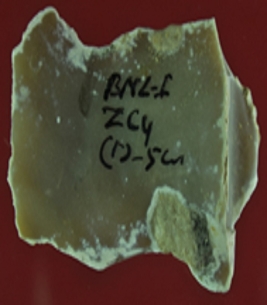 | Description / विवरण | Trench ZC 4, layer 1, depth 5 cm It s a chert blade in uneven shape. Little bit thick in the middle and edges are damaged. Surface is smooth and appearance is brownish. |