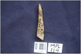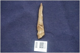 | Provenance / उद्गम/क्षेत्र | Blade, made on Chert, prepared platform along the proximal end, bulb absent on ventral side, use-wear marks along the cutting edge. |