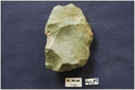 | Description / विवरण | A chert side scraper with retouches on one edge. The other side is thick. It has a bulb of percussion |