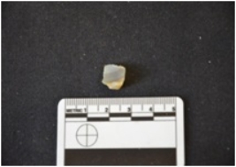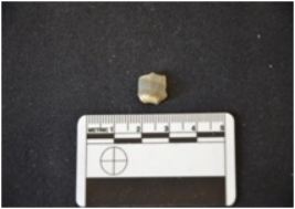 | Description / विवरण | An agate scraper on core has blade scars on surface, retouches and use-wear marks on working edges. |