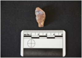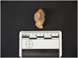 | Description / विवरण | Chert utilized flake has a ridge on dorsal side, striking platform, diffused bulb on ventral side and use-wear marks on working edge. |