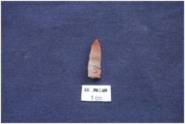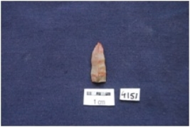 | Description / विवरण | A chert flake blade has mid ridge on dorsal side, cortex on proximal ends and retouches on working edges. |