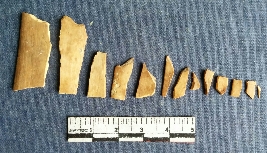 | Description / विवरण | The bone scarper piece are 13 in number, varying in size. The piece are not a perfect refit, but show same flat nature of bone scarper. The pieces have angular edges due to breakage. The surface has medium polish and pale yellow color. |