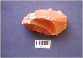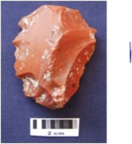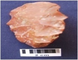 | Description / विवरण | Side Scraper, made on an end struck chert flake, flake scars on dorsal side, retouch along both lateral edges, prepared platform, diffused bulb on ventral side. |