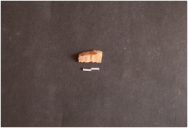 | Description / विवरण | Chert blade fragment has a ridge on dorsal side, broken from both ends, use-wear marks on edges and triangular cross-section. |