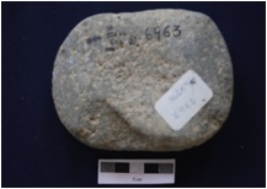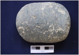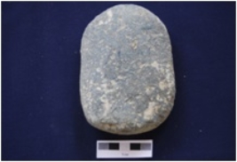 | Description / विवरण | Elliptical section stone with a convex surface and a flat surface. The ends are round and show marks. |