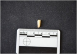 | Description / विवरण | Fragment of Agate blade has two ridges on dorsal side, broken from distal end, use-wear marks on cutting edge and trapezoidal cross-section. |