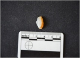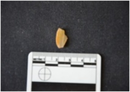 | Description / विवरण | Fragment of an Agate blade has striking platform, broken from distal end and partly cortex visible. |