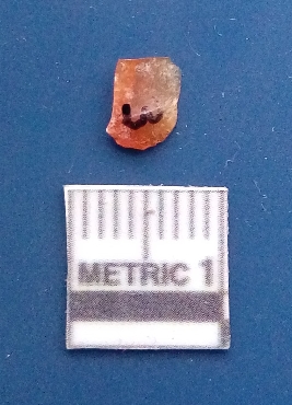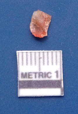 | Description / विवरण | It is a blade fragment . The ridges are clearly seen on the dorsal surface while the ventral surface is plain. The sides are sharp. It is orangish in colour and is triangular in cross - section. |