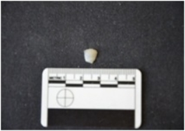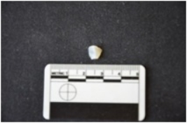 | Description / विवरण | Fragment of chalcedony blade has a ridge on dorsal side, broken from both ends, use-wear marks on cutting edges and triangular cross-section. |