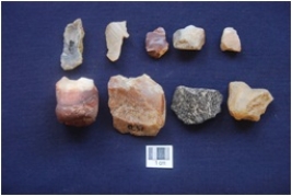 | Description / विवरण | Nodules and Flakes on banded Agate, Chalcedony and Chert, by-product of tool manufacturing. |