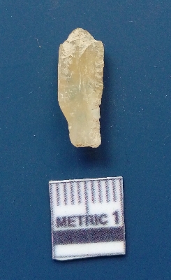 | Description / विवरण | It is a flake. The flake scars are clearly seen on the dorsal surface while the ventral surface is clearly seen. It is yellowish white in colour. |