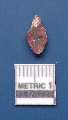 | Description / विवरण | It is a blade fragment. The ridges are clearly seen on the dorsal surface while the ventral surface is plain. The sides are sharp and retouched. It is triangular in cross - section. |