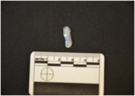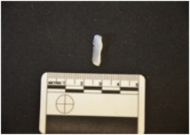 | Description / विवरण | Chalcedony blade fragment has a midridge on dorsal side, striking platform, diffused bulb on ventral side, triangular cross-section |