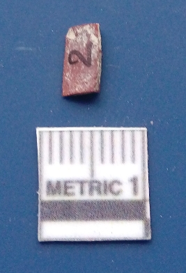 | Description / विवरण | It is a blade fragment. The ridges are clearly seen on the dorsal surface while the ventral surface is plain. The sides are sharp and retouched. It is triangular in cross - section. |
