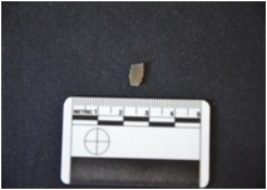 | Description / विवरण | Fragment of moss agate blade has a midridge on dorsal side, striking platform, broken from distal end triangular cross-section and use-wear marks on cutting edges. |