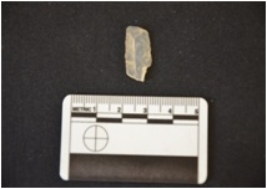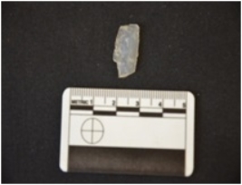 | Description / विवरण | Chalcedony blade fragment has a ridge on dorsal side, broken from proximal end retouches and use-wear marks on cutting edges and triangular cross-section. |