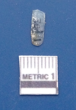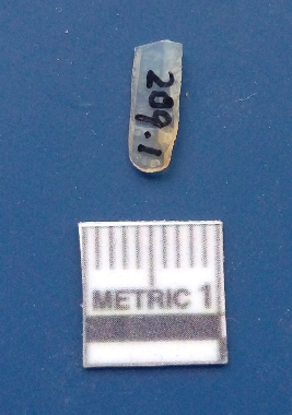 | Description / विवरण | It is a blade fragment. The lateral sides are sharp. The ridges are clearly seen on the dorsal surface while the ventral surface is plain. |