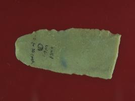 | Description / विवरण | Trench WG 1, layer 1, depth 0-10 cms It s a chert blade in rectangular shape but one side is broader than other. Little bit thick in the middle and edges are rough. Surface is smooth and appearance is off white. |