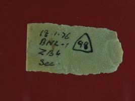 | Description / विवरण | Trench ZB 4, section It s a chert blade in rectangular shape but one side is broader than other. Little bit thick in the middle and edges are rough. Surface is smooth and appearance is off white. |