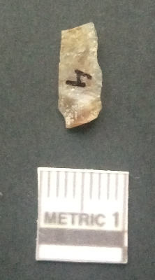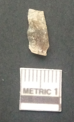 | Description / विवरण | It is a blade fragment. The lateral sides are sharp. The ridges are clearly seen on the dorsal surface while the ventral surface is plain. The bulb of percussion and the striking platform is clearly seen. |