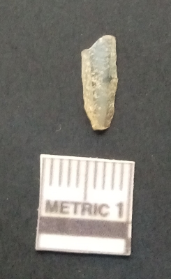 | Description / विवरण | It is a blade fragment. The lateral sides are sharp. The ridges are clearly seen on the dorsal surface while the ventral surface is plain. |