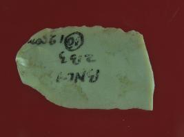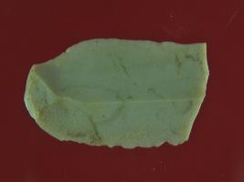 | Description / विवरण | Trench ZB 3, layer 10, depth 125 cms It s a chert blade in rectangular shape but one side is broader than other. Little bit thick in the middle and edges are rough. Surface is smooth and appearance is off white. |