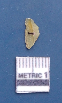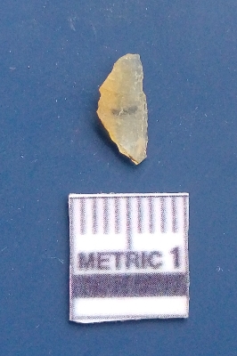 | Description / विवरण | It is a blade fragment. The lateral sides are sharp. The ridges are clearly seen on the dorsal surface while the ventral surface is plain. |