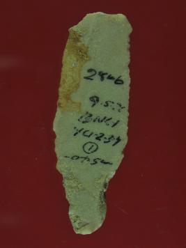 | Description / विवरण | Trench YO 2-3-4, layer 1, depth 0-5 cms It s a chert blade in rectangular shape but one side is broader than other. Little bit thick in the middle and edges are rough. Surface is smooth and appearance is off white. |