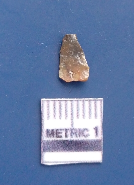| Description / विवरण | It is a blade fragment. The lateral sides are sharp. The ridges are clearly seen on the dorsal surface while the ventral surface is plain. |