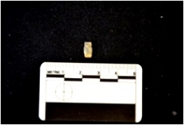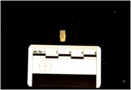 | Description / विवरण | Fragment of a blade made on agate, broken at both ends, use wear marks seen |
