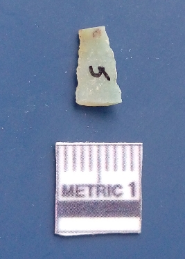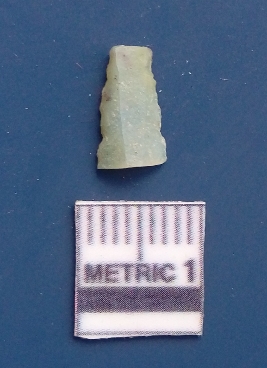 | Description / विवरण | It is a blade fragment. The lateral sides are sharp. The ridges are clearly seen on the dorsal surface while the ventral surface is plain. |