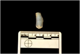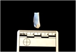 | Description / विवरण | Blade made on chalceony, use wear marks seen on both cutting edges, bulb of percussion visible, broken at the distal end |