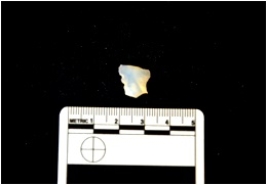 | Description / विवरण | Flake struck of chalcedony, use wear marks seen, bulb of percussion present |