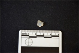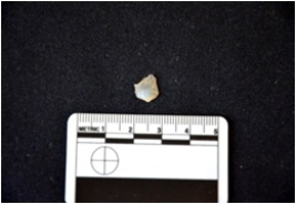| Description / विवरण | Fragment of a blade made on chalcedony, use wear marks seen, broken at the distal end |