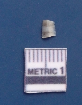 | Description / विवरण | It is a blade fragment. The lateral sides are sharp. The ridges are clearly seen on the dorsal surface while the ventral surface is plain. |