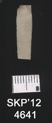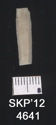 | Description / विवरण | This is a chert blade of trapezium cross section. Flaked and tapered at one end with trapezium cross section. The opposite end has a bulb of percussion and broader the other end. |