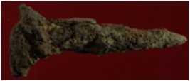 | Description / विवरण | Trench XAU 19, Qdt 2, layer 4, depth 170 cm It is a nail made of iron. It is capped and pointed. Heavy deposition of dirt and corroded. |