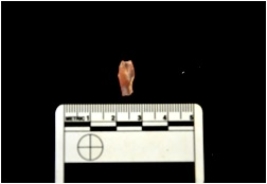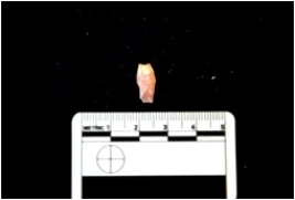 | Description / विवरण | Blade made of chert, use wear marks seen, bulb of percussion visible |