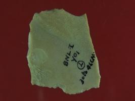 | Description / विवरण | Trench YO 1, layer 2, depth 30-46 cms It s a chert blade in uneven shape and thick from one side. Edges are damaged and surface is smooth with greyish appearance. |