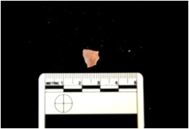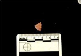 | Description / विवरण | Flake struck of chert, use wear marks visible, broken at distal end, bulb of percussion visible |
