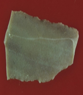 | Description / विवरण | It is a broken chert blade. Edges are rough, surface is smooth and little curved. It is thick in the middle and appearance is creamish. |
